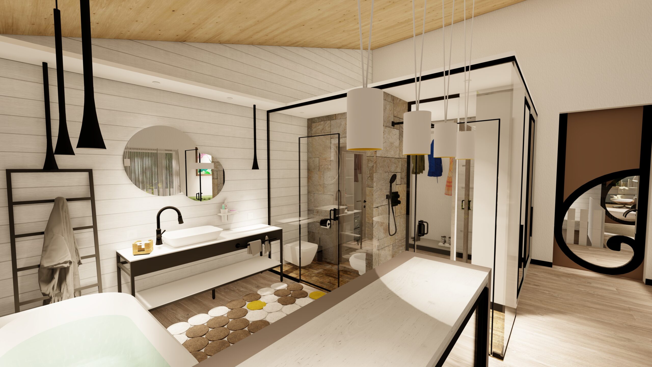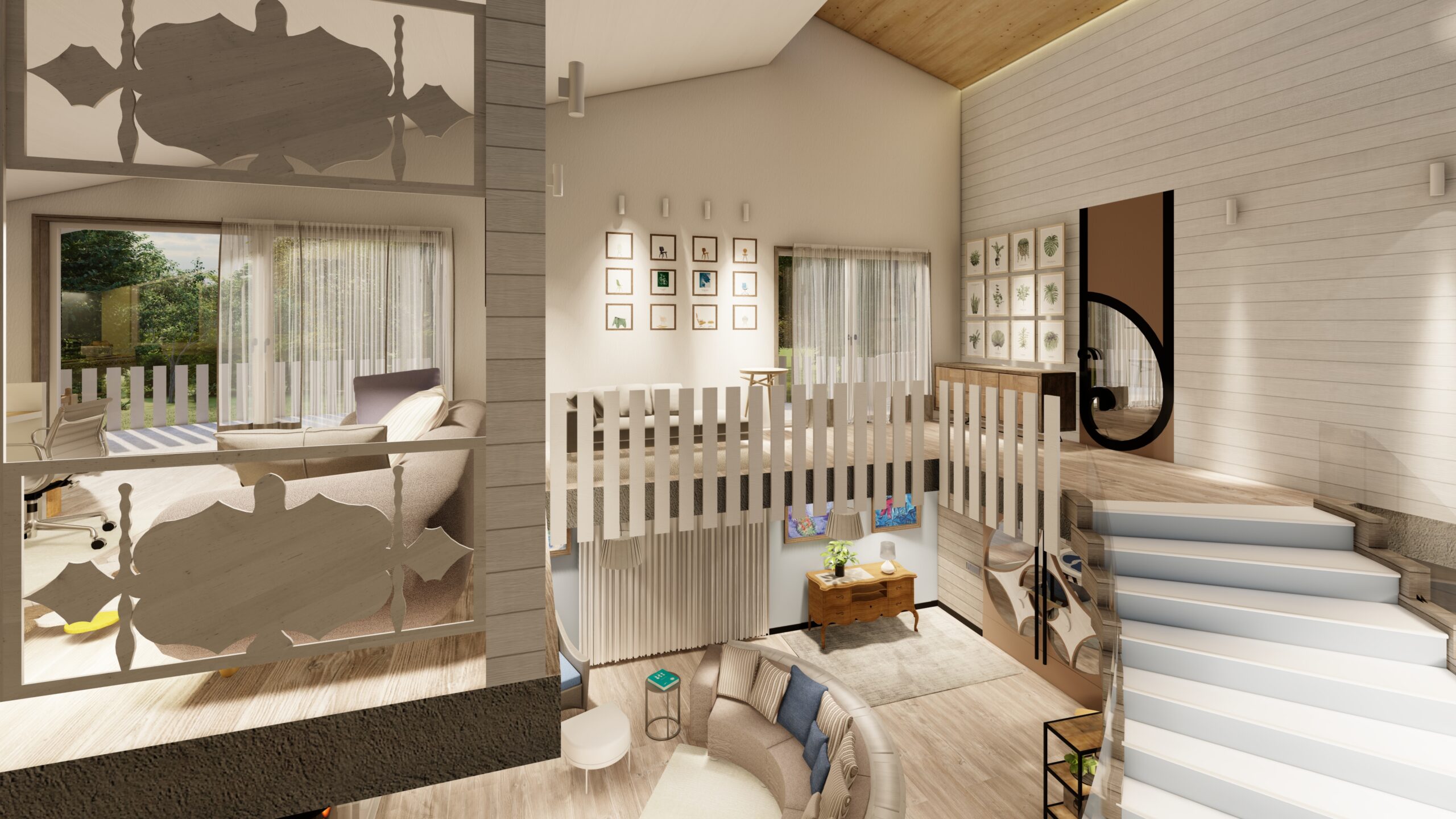 • L’escala d’Infinit és el protagonista del disseny. L’espai en planta baixa s’ha dividit en 2 blocs: la sala d’estar i la zona tancada de la cuina/menjador.