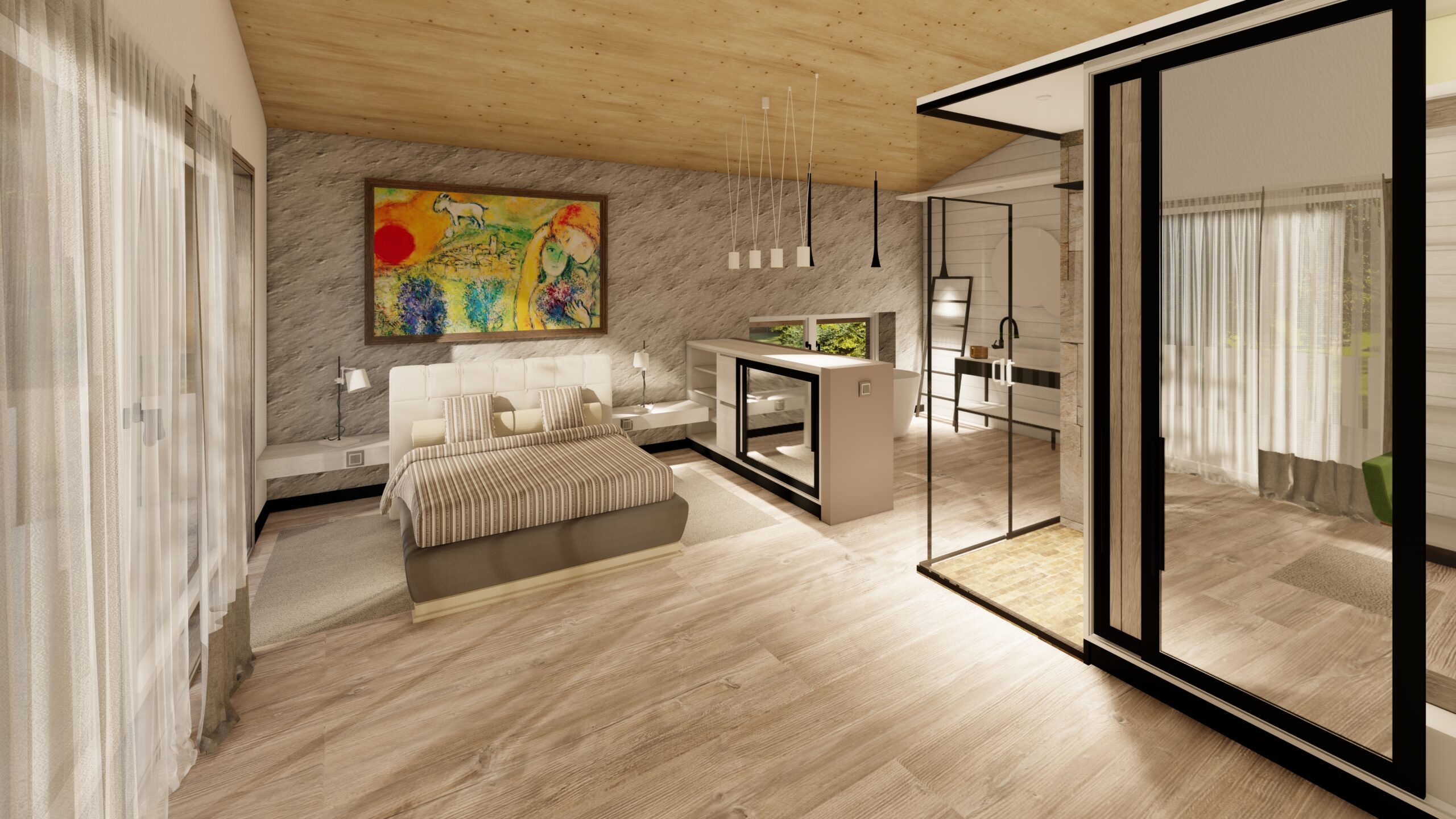 • L’exterior de la casa és un conjunt que vol ser natural, amb una composició amb acord amb les obertures de la casa.
