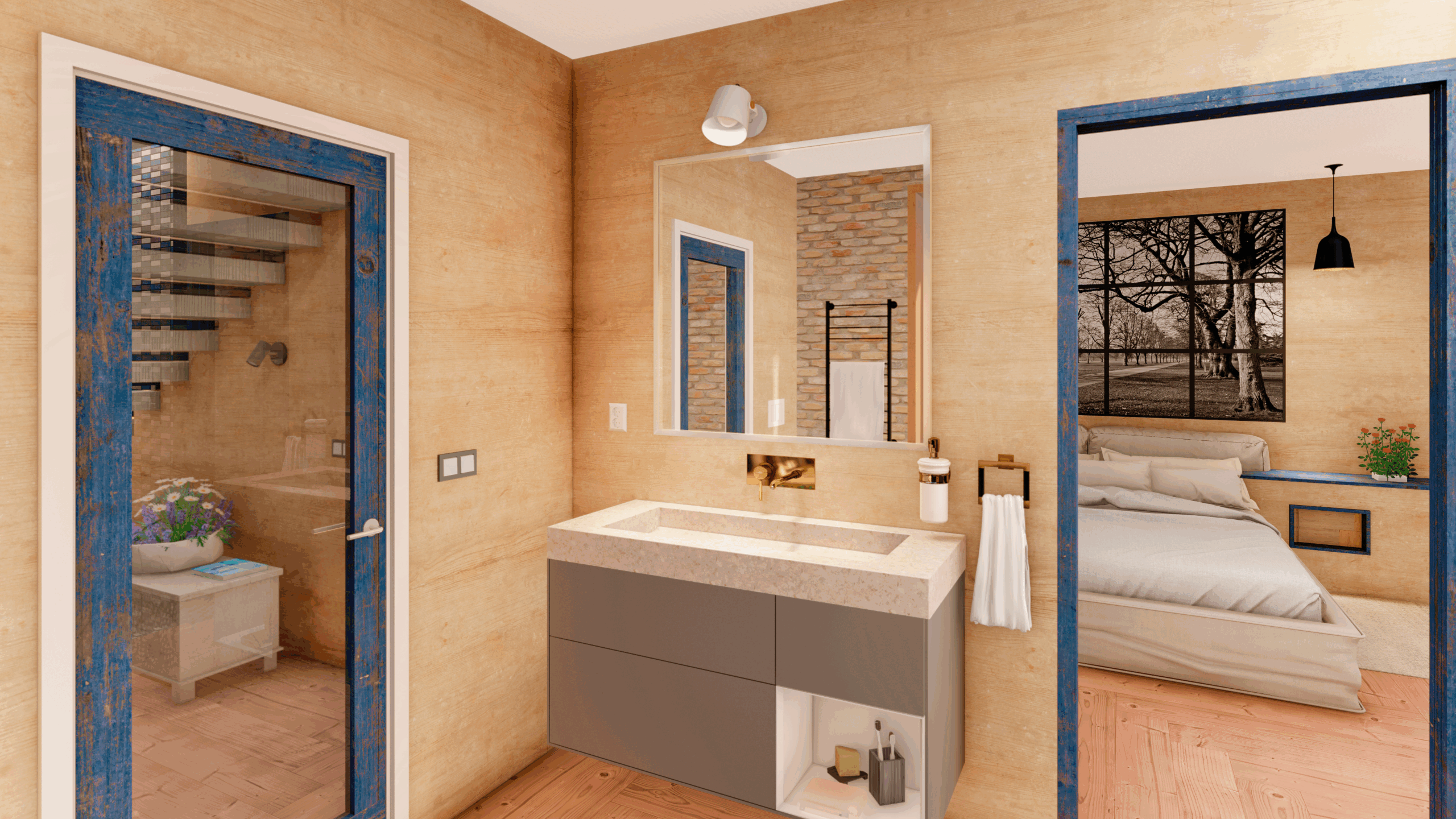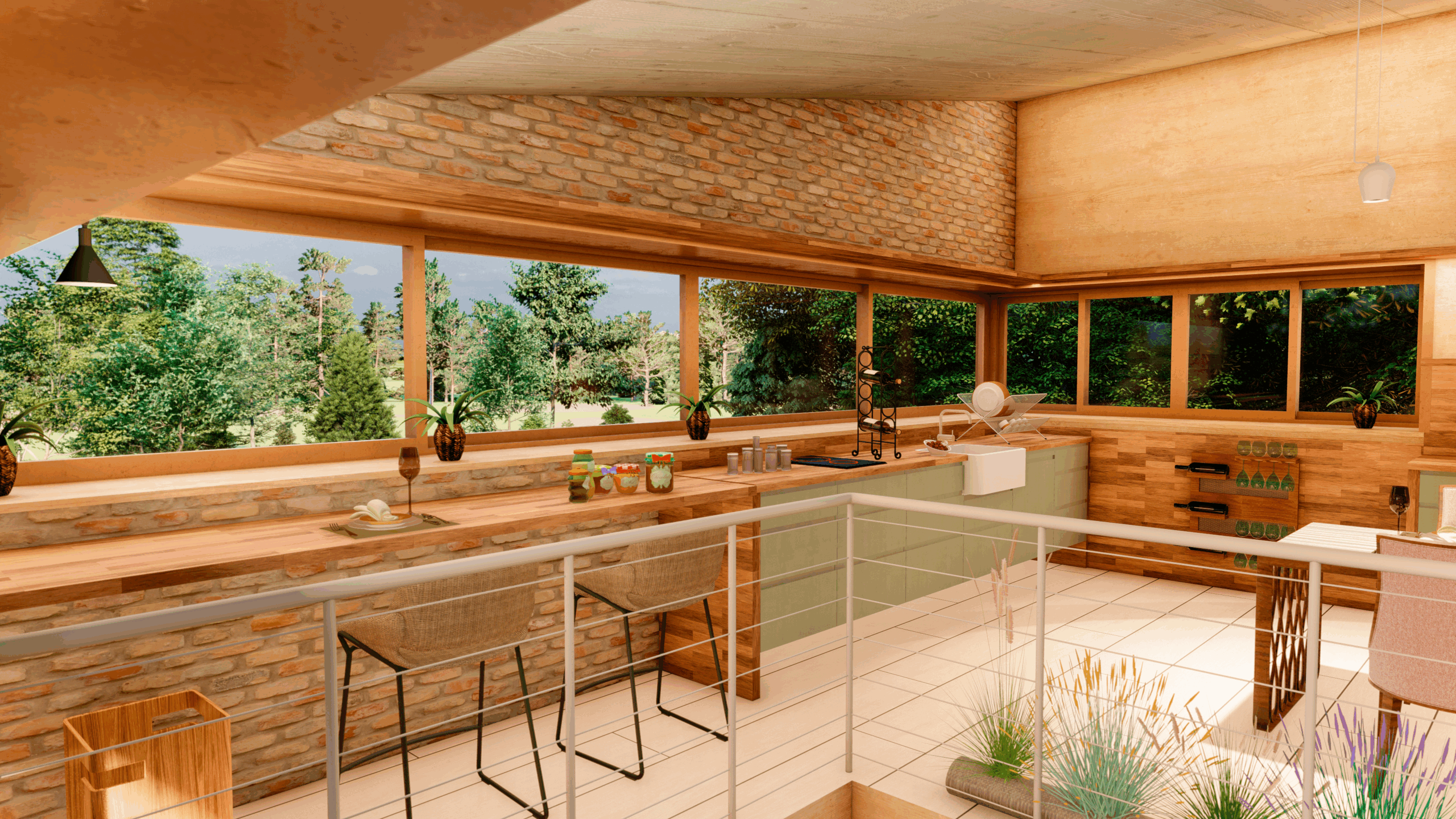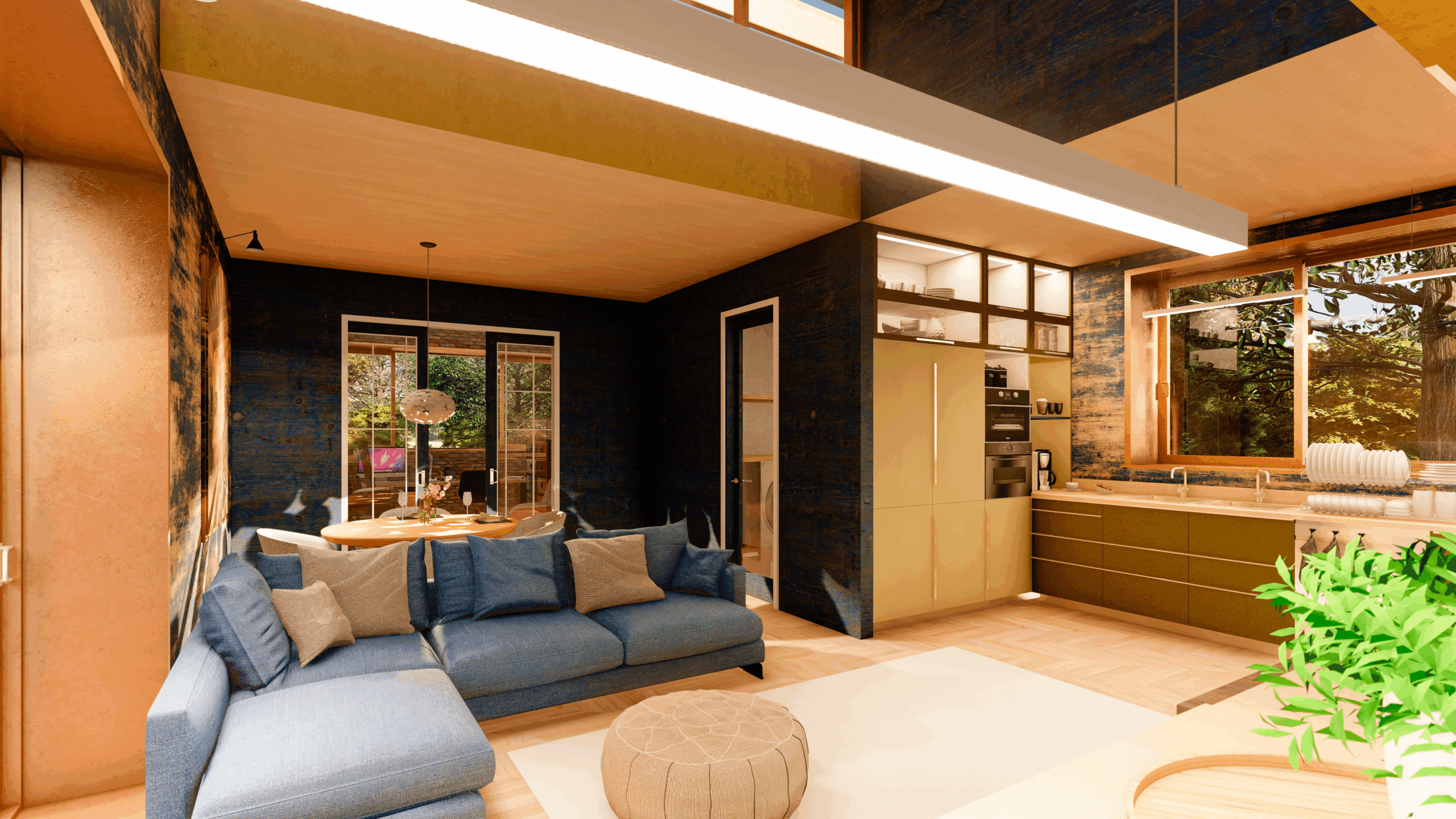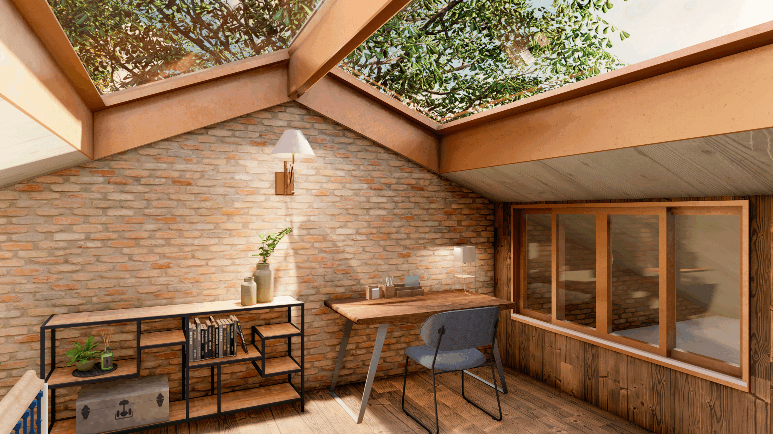 L’espai de dia es diferencia entre l’espai creatiu amb una altell de repòs i l’espai de cuina-safareig – saló i estar.