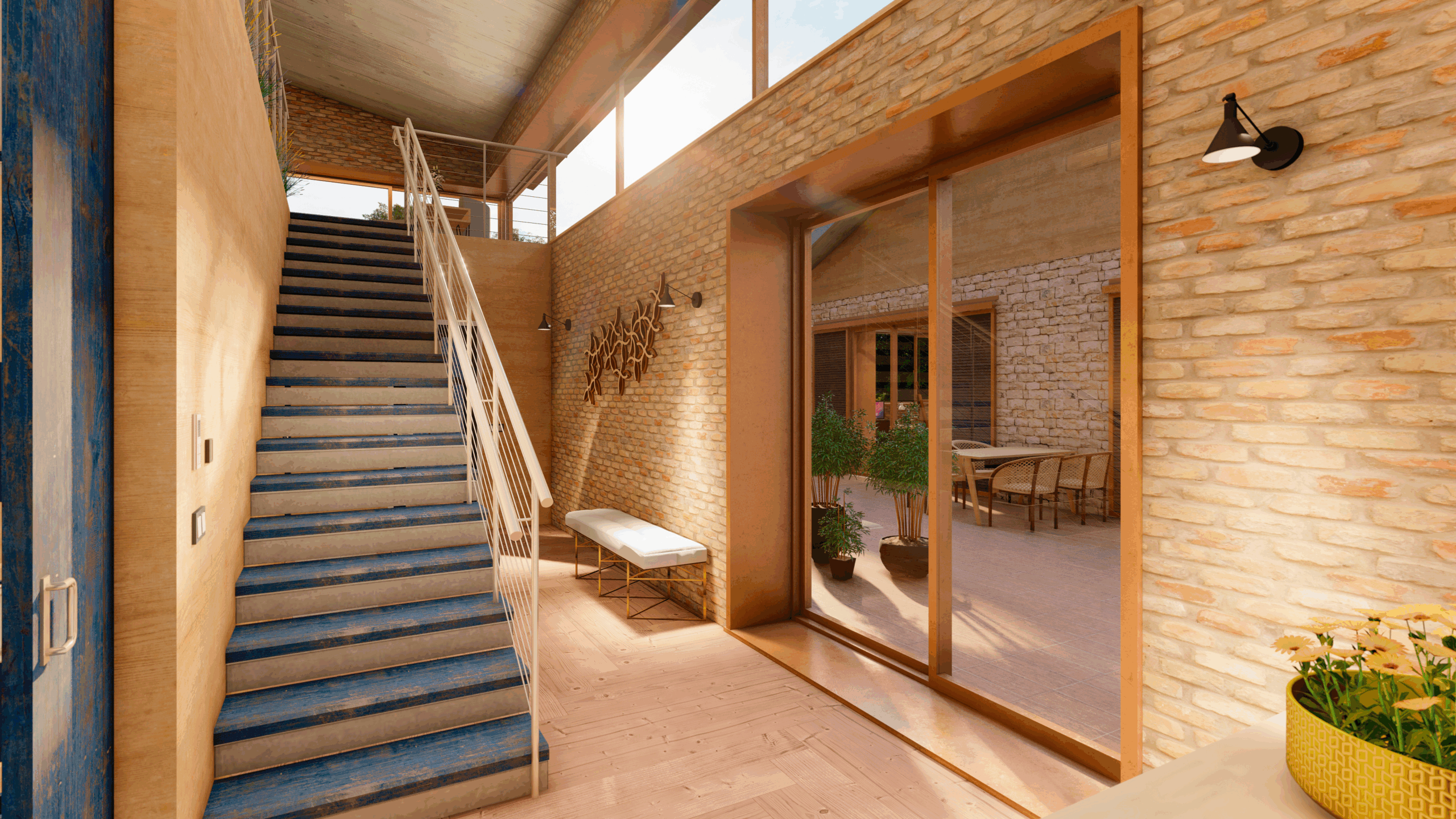 Entre les 2 edificacions, una terrassa oberta permet la comunicació interna i també gaudir d’una terrassa que engrandeix els espais interiors.