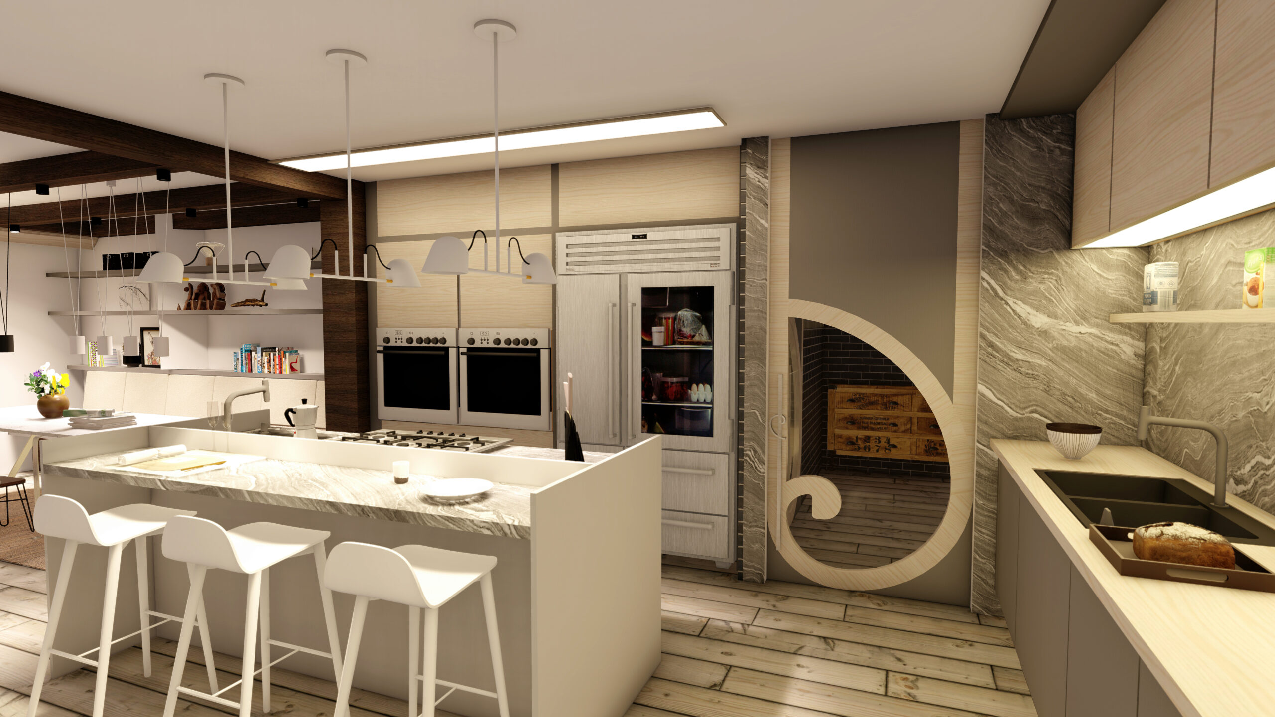 - La cuina de Pradrina 01 vol ser el punt central que uneix els altres ambients de la sala d’estar.